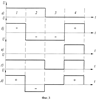 На фиг.3 представлены эпюры сигналов, где “а” – сигнал на выходе таймера 8, “б” – полярность (знак) сигнала на выходе сумматора 6, “в” – сигнал на выходе логической схемы И 15, “г” – сигнал на выходе логической схемы ИЛИ 14, “д” – полярность (знак) сигнала на выходе электронного ключа 13.