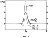 Если бы подобный участок представлял собой просто участок меньшей удельной массы, например более тонкий участок банкноты 1, то реакция материала банкноты на воздействие ультразвука не зависела бы от частоты воздействующих на банкноту ультразвуковых колебаний и, следовательно, относительное увеличение коэффициентов прохождения T(f1) и T(f2)×f2/f1 было бы одинаковым на обеих частотах f1, f2. В этом случае обозначенная пунктиром кривая, отражающая соотношение между обоими коэффициентами прохождения, оставалась бы на постоянном уровне, при этом на отдельных экспериментально снятых кривых имелось бы по одному пику одинаковой высоты.