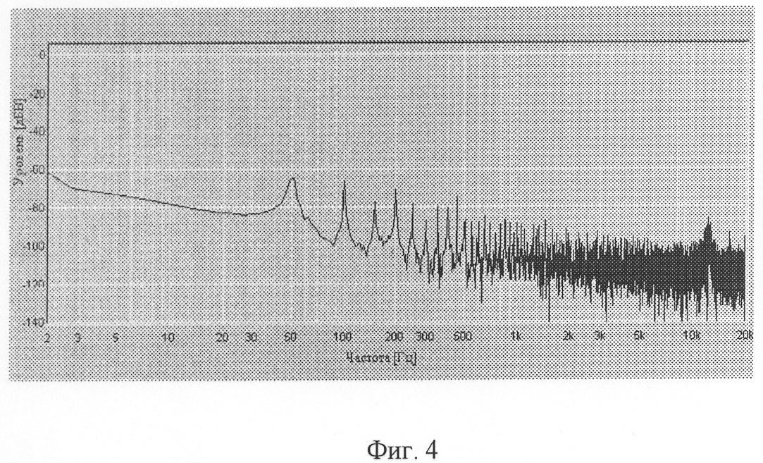 На Фиг.4 представлены реальные спектрограммы ЭМИ, уровни которых подлежат определению, в случае fк=f0=50 Гц.