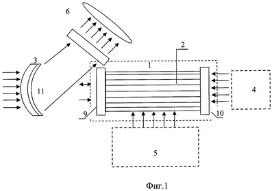 Недостатком данного устройства является то, что под действием поля накачки в активных световодах НАС происходит выделение тепла. Это приводит к снижению чувствительности устройства визуализации инфракрасного изображения (С.Н.Андрианов, В.П.Иванов, Ю.Е.Польский. Пороговая чувствительность антистоксового преобразователя частоты. Письма в ЖТФ, 2004, Т.30, №14, С.20-24). Кроме того, распределение температуры по объему НАС будет неоднородным. Это приводит к неоднородности чувствительности световодов, входящих в НАС и, соответственно, к искажению преобразуемого инфракрасного изображения.