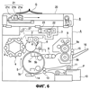 Внутренняя часть проявочного контейнера 32 разделена перегородкой 36 на проявочную камеру (первая камера) R1 и перемешивающую камеру (вторая камера) R2, а над перемешивающей камерой R2 предусматривается загрузочная воронка 34 тонера. Проявочная камера R1 и перемешивающая камера R2 соответственно снабжаются переносящими винтами 37, 38. Загрузочная воронка 34 тонера имеет подающее отверстие 35, через которое тонер t попадает в перемешивающую камеру R2 при пополнении ее тонером.