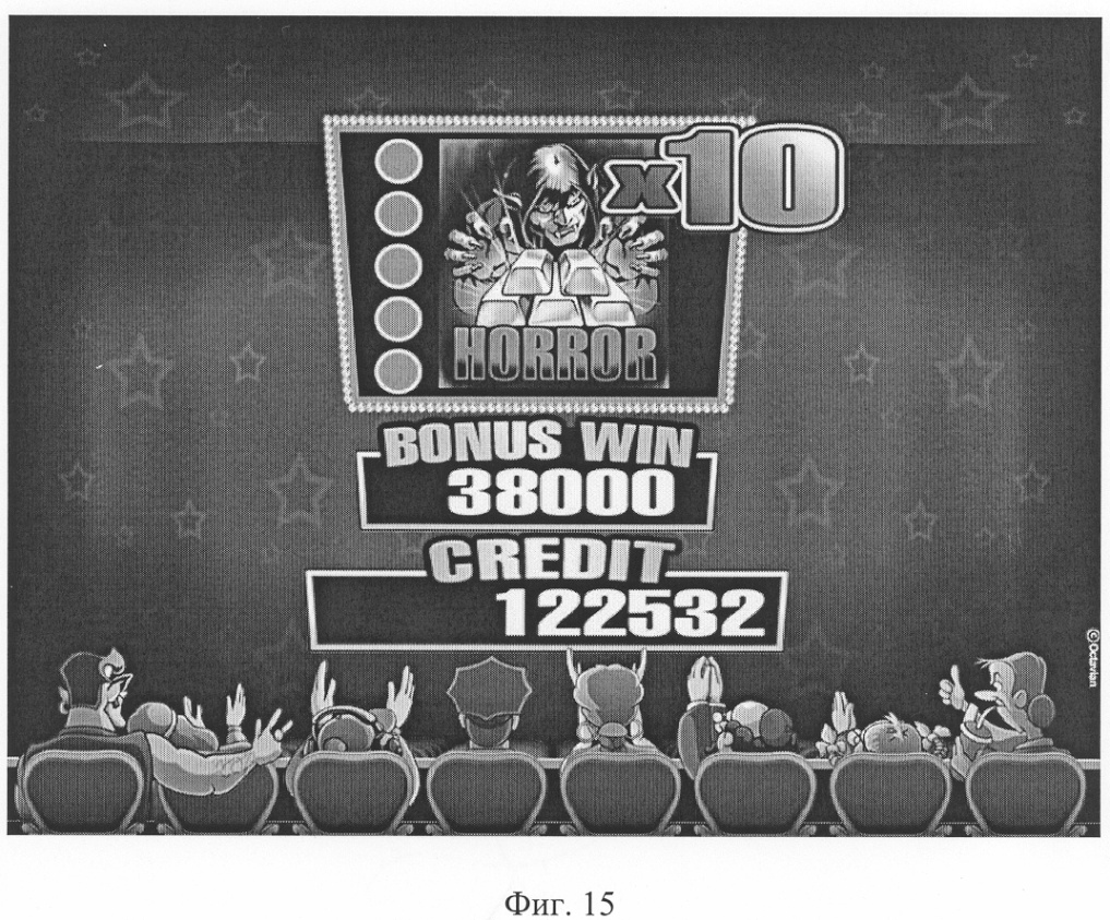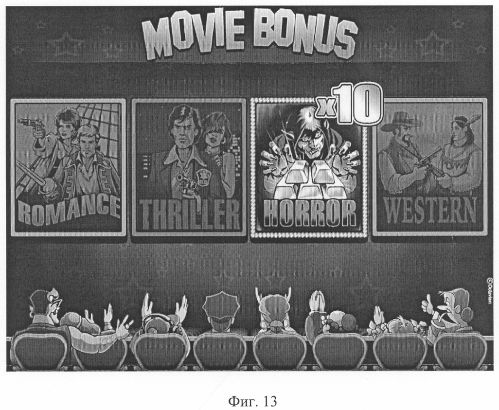 фиг.12 – экран дисплея с изображением результата, вызывающего переход из режима основной игры в режим первой призовой игры;