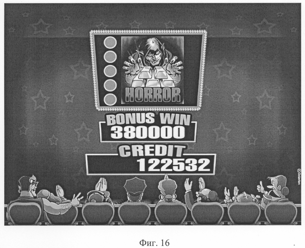 фиг.15, 16 – экран дисплея, отображающий последовательность показа максимально возможного выигрыша в первой независимой игре режима первой призовой игры;