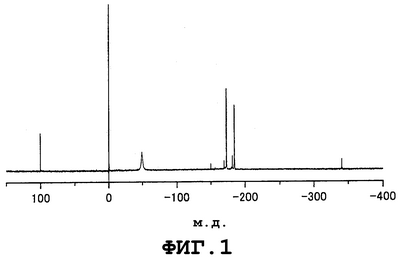 Фиг.2 представляет собой спектр 119Sn-ЯМР нерегенерируемого инертного соединения, которое отгоняется на стадии (2) в примере 1.