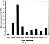 По литературным данным (Болховских З.В., Гриф В.Г., Захарьева О.И., Матвеева Т.С. Хромосомные числа цветковых растений. Л.: Наука, – 1969) число хромосом в клетках меристемы корня интактного растения Ajuga reptans 2n=32. Анализ распределения числа хромосом в клетках суспензионной культуры корня Ajuga reptans выявил большую вариабельность уровня плоидности. На фиг.2 представлено распределение числа хромосом в клетках суспензионной культуры Ajuga reptans.