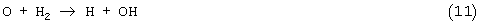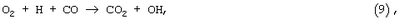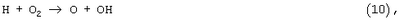 в результате которой возникает легковоспламеняющийся водород. Последующее гомогенное окисление водорода приводит к образованию радикалов ОН и атомов Н и О, обуславливающих как развитие цепей основной реакции