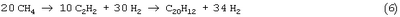 Недостатком данного способа является то, что при низкой концентрации кислорода воздуха в интервале температур 400-500°С термическое разложение углеводородов масла идет по несимметричной схеме с образование высокомолекулярных углеводородов, сажи и свободного углерода, например, разложение идет по реакции (1)