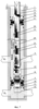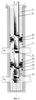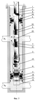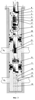 Для управления параметрами работы объектов в каждой скважинной камере (перепускном узле) 7, 9, 13 либо отсутствует, либо установлен клапан 21, 22, 23 (фиг.1-6), например, в виде глухой пробки, штуцера, отсекателя, стабилизатора, регулятора, измерительного прибора, расходомера, манометра, дебитометра, перепускного дифференциального узла и прочих. Для измерения расхода воды, закачиваемой в верхний или нижний объект, между насосом 3 и скважинной камерой 7, расположенной между пакерами 4, 5 или объектами П1, П2, спущен измерительный прибор, например, глубинный расходомер 24 (фиг.1, 2) и прочие.