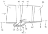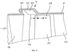 1. Рециркуляционное устройство для турбокомпрессоров, прежде всего для газовых турбин, имеющее расположенную концентрично оси турбокомпрессора в зоне свободных концов лопаток лопаточного венца кольцевую камеру, осевая середина которой расположена по ходу потока перед осевой серединой свободных концов лопаток и которая в радиальном направлении граничит с контуром основного проточного канала, так называемого кольцевого пространства, и множество расположенных внутри кольцевой камеры и распределенных по ее окружности направляющих элементов, при этом в кольцевой камере в ее передней и/или задней частях предусмотрена возможность прохождения потока в ее окружном направлении, а направляющие элементы соединены, по меньшей мере, с одной стенкой кольцевой камеры, а в остальном консольно или свободно выступают в нее, отличающееся тем, что обращенные к кольцевой полости вершины (41-44, 57) направляющих элементов (37-40, 56) лежат на и/или вблизи ограничивающей контур (11, 12) основного проточного канала (9, 10) линии и в осевом направлении перекрываются (UE 1 – UE 4) со свободными концами (25-28) лопаток или в осевом направлении граничат с зоной, в которой расположены свободные концы (25-28) лопаток, при этом отношение осевой длины (LR) кольцевой камеры (29-32, 53), измеренной вдоль ограничивающей контур (11, 12) основного проточного канала (9, 10) линии, к осевой длине (LS) концов (25-28) лопаток составляет от 0,2 до 1,5.