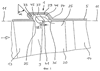6. Рециркуляционное устройство по п.1, или 2, или 4, отличающееся тем, что направляющие элементы (37-40, 56), если смотреть в осевом направлении, наклонены под определенным углом ( ) в окружном направлении или искривлены в окружном направлении, при этом указанный угол ( ) может изменяться по длине направляющих элементов (37-40, 56) и подобран с таким расчетом, чтобы облегчить с аэродинамической точки зрения, т.е. обеспечить аэродинамически рациональное поступление рециркуляционного потока в кольцевую камеру (29-32, 53).