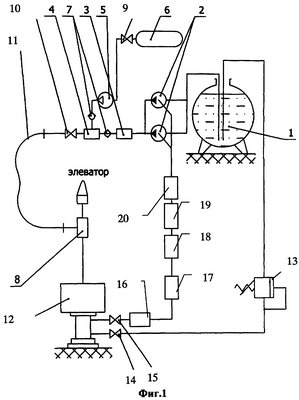 Заметим, что вместо аэратора 4 может использоваться и эжектор, в рабочую камеру которого компрессором 5 под давлением подается воздух или сжатый газ (азот, СО2) из емкости 6. А для предотвращения обратного эффекта на выходе компрессора 5 и фильтра грубой очистки 3 установлены обратные клапаны 7.