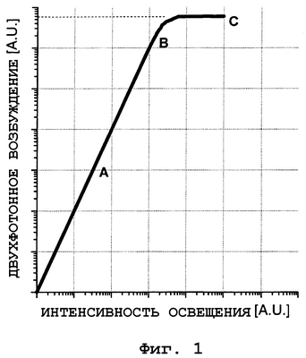 На Фиг.1 представлен собой график зависимости двухфотонного возбуждения от интенсивности освещения.