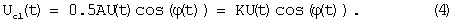 где Vc(t)=U(t)cos (t) и Vs(t)=U(t)sin (t) – квадратурные составляющие сигнала. Составляющие Vc(t) и Vs(t) соответствуют действительной и мнимой частям комплексной огибающей U(t) сигнала u(t). Для этого полученные цифровые отсчеты (фиг.6в) перемножаются на цифровые отсчеты (фиг.6д, ж) двух гармонических сигналов (фиг.6г, е) одной и той же частоты, сдвинутых друг относительно друга на /2. Умножение исходного сигнала u(t) на сигнал V(t)=Acos ( 0t) приводит к формированию сигнала Uc(t) вида: