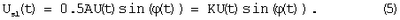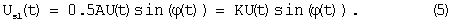 Аналогичным образом формируют вторую квадратурную составляющую путем умножения сигнала U(t) (см. фиг.6в) на сигнал