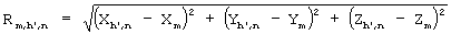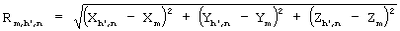 где – расстояние между m-м антенным элементом и эталонным источником, расположенным в центре bh’,n-ой элементарной зоны или объема привязки; m, l (1…М), m l, Xh’,n, Yh’,n, Zh’,n и Xm, Ym, Zm – координаты эталонного источника и m-го антенного элемента соответственно.