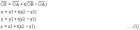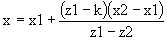 Координаты точек пересечения линии и плоскости отсечения можно выразить посредством заданного параметрического уравнения. Параметрическое уравнение может быть решено посредством определения параметра t, если значение по оси z для плоскости отсечения задано как k. Таким образом, можно простым способом получить координаты точек пересечения линии и плоскости отсечения.