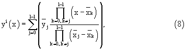 Выражение (7) определено экспериментально исходя из минимизации отклонения интегрального спектра приведенного сигнала. При формировании приведенного сигнала на границах периодов используется сглаживание искажений на стыках периодов путем пересчета значений отсчетов в начале и конце периода. При пересчете значений используется интерполяционный полином Лагранжа (8):
