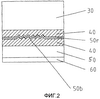 На фиг.2 представлен пример выполнения слоистой пленки с последовательностью слоев соответственно структуре пленки горячего тиснения. Она включает в себя так называемую накрывающую (верхнюю) пленку 30, чувствительный к лазерному излучению слой 40, промежуточный слой 50, образующий фоновый слой, который является необязательным, и клеящий слой 60, который также является необязательным. Чувствительный к лазерному излучению слой 40 размещен соответствующим образом, как чувствительный к лазерному излучению слой 4, по обе стороны от отражающего слоя 50r, причем соответствующим образом, как предусмотрено в варианте по фиг.1, оба чувствительных к лазерному излучению слоя могут быть выполнены различным образом или одинаково. Соответствующим образом, как в варианте пленки горячего тиснения по фиг.1, и в случае слоистой пленки по фиг.2 предусмотрена дифракционная и/или голограммная структура 50b, а именно, также в области обоих чувствительных к лазерному излучению слоев 40 и расположенного между ними отражающего слоя 50r.