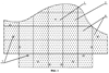 Натяжение сетеполотна (29) осуществляется по периферии тарированными грузами в соответствии с требуемыми значениями. После совмещения реперных точек сетеполотна (29) с точками пересечения армирующих нитей, т.е. позиционирования сетеполотна (29) относительно нижней сети (28), проводится фиксация сетеполотна (29) на нижней сети (28), т.е. соединение сетеполотна (29) с армирующими связями в расчетных точках с помощью ниток и клея.