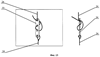 Далее производится соединение свободного конца вертикальной стяжной нити (24) с нижней сетью (28) рефлектора в каждой узловой точке сети (12), в направлении от периферии к центру силового кольца (15), при помощи устройства формирования узловой точки нижней сети (31), в котором пересекаются и фиксируются несущие нити нижней сети (30) при помощи, например, маркера-фиксатора (32). Длина вертикальной стяжной нити (24) может меняться при помощи узла регулировки длины (фиг.13), который представляет из себя передвижной стопор (34). Значение длины вертикальной стяжной нити (24) определяется расчетно-графическим способом в соответствии с формой отражающей поверхности рефлектора и требуемым натяжением нижней сети (28) рефлектора. Длина вертикальной стяжной нити (24) фиксируется, например, при помощи замка гибкой нити (33).