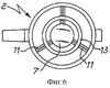 В качестве альтернативы кольцу 12 можно использовать радиальные ребра 11 (смотри фиг.9), которые проходят до высоты поверхности 13 кольца 12 и которые имеют часть своей верхней поверхности в форме, сходной с формой наклонной поверхности 13 кольца, и расположены на том же расстоянии от элемента 7.