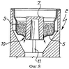 В другом варианте выполнения изобретения величиной деформации управляют с использованием механических средств. Например, это происходит при использовании патронов, которые претерпевают упругую деформацию стенки основания после подачи горячей воды под давлением. В этом случае указанный выше эффект противодействия деформации с помощью самого материала не происходит, и используются «механические средства» с целью ограничения величины деформации стенки основания. На фиг.5 и 6 показан предпочтительный вариант выполнения этих средств, образуемых кольцом 12, расположенным концентрично пробивающему цилиндру 7 и на расстоянии от него. Кольцо 12 опирается на три ребра 11 и предпочтительно имеет часть 13 поверхности, наклоненной в направлении цилиндра 7, т.е. в направлении внутрь устройства 2, и в направлении стенки основания. Поэтому угол наклона верхней части 13 поверхности находится в диапазоне между 0° и 45°, предпочтительно между 15° и 38° и более предпочтительно равен 30 относительно горизонтали. Указанные механические средства могут использоваться дополнительно с патроном, имеющим, по меньшей мере, стенку основания из упругодеформируемого материала.