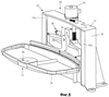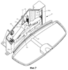 На фиг.3 компоненты и элементы с фиг.2 показаны на виде с разнесением деталей, если смотреть снизу. На этом виде показаны, в частности, углубление 19, расположенное в нижней части собирающего поддона 3, две скользящие планки 23, расположенные в нижней части опорного элемента 8, выступ 24, расположенный у ползуна 9, а также две сжимающие пружины 21. Кроме того, на этом виде показано то, что каждое из двух оснований 8а опорных элементов и ползун 9 содержат козырек 25, 26, расположенный на передней стороне этих элементов 8а, 9, и служащий рукояткой.