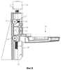 Более того, имеется переключатель 38 верхнего предела, прерывающий движение наверх собирающего поддона 3а, как только рычаг (не показан), прикрепленный к опорному элементу 32, воздействует на переключатель 38 предела. Аналогично, имеется переключатель нижнего предела (не показан), ограничивающий перемещение вниз собирающего поддона 3а. Шпиндель 33 с резьбой имеет самозапирающуюся резьбу, в результате чего опорный элемент 32 запирается по своему вертикальному положению, как только шпиндель 33 с резьбой остановлен.