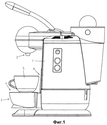 На фиг.1 показан вид сбоку полуавтоматической кофеварки. Поскольку такие кофеварки хорошо известны любому специалисту в данной области техники, здесь далее дополнительно будут раскрыты только те признаки, которые относятся к настоящему изобретению.