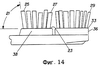 Фиг.14 – вид сбоку с вырывом расположения пучков щетины зубной щетки, подходящей для использования вместе с электрическими зубными щетками на фиг.1 и 9, причем некоторые пучки щетины образуют острый угол с верхней поверхностью держателя щетинок;