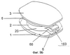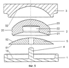 9. Протез по п.1, отличающийся тем, что промежуточный элемент, называемый блоком (5), введен на внутренней стороне одной из пластин (1) и создает шарнирное соединение с другой пластиной (3) вокруг сердечника (2), причем сердечник имеет вогнутую несущую нагрузку поверхность (21) и выпуклую несущую нагрузку поверхность (23), при этом указанные две несущие нагрузку поверхности находятся в контакте дополняющим образом с одной несущей нагрузку поверхностью (52) блока (5) в случае одной поверхности, и с несущей нагрузку поверхностью (32) внутренней стороны пластины (3), выполненной без блока, в случае другой поверхности.