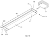 В варианте, показанном на фиг.10, представлено устройство для установки (введения) протеза в соответствии с настоящим изобретением, выполненное в виде элемента (9), называемого направляющей ввода и имеющего внутренний канал (90) главным образом прямоугольного сечения, в котором может скользить протез (Р). Этот канал (9) образован двумя полунаправляющими (91, 92) с поперечным сечением в виде буквы U, которые соединены друг с другом. На одном из концов указанная направляющая (9) имеет один или несколько опорных блоков или кромок (910, 920), выступающих относительно продольной оси (d9) направляющей. Эти опорные блоки (910, 920) образуют удлинение меньших боковых стенок (9) прямоугольного сечения канала, называемых вертикальными.