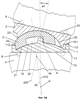 – фиг.4 – боковое сечение протеза в развернутом виде в соответствии с настоящим изобретением для варианта, который содержит сердечник с вогнутой нижней поверхностью, дополнительный блок и нижнюю пластину с кольцевым ограничителем,