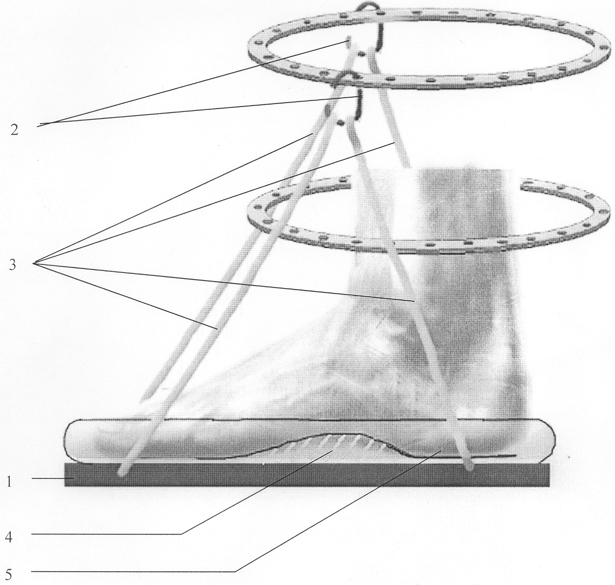 Стоподержатель содержит основание 1, изготовленное из фанеры или другого жесткого материала по форме и размерам стопы пациента. Основание при помощи проволочных крючков 2 и резиновых тяг 3 крепят к проксимальному кольцу аппарата для чрескостного остеосинтеза костей голени. На основании 1 закреплен супинатор 4, повторяющий продольный и поперечный свод стопы. Сверху по периметру основания размещен ограничительный валик 5.
