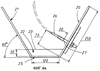 На фиг.4а показан вид сбоку устройства, которое известно как зажимное приспособление и на котором были выполнены экспериментальные замеры. Зажимное приспособление и насосное устройство были спроектированы и выполнены таким образом, что размеры, показанные на фиг.4а и указанные в миллиметрах, и указанный угол, составляющий 60°, по существу соответствуют обычным положениям, существующим между пользователем и подгузником-трусами, надетыми на пользователя. Зажимное приспособление выполнено с передней поверхностью 20, задней поверхностью 21 и промежностной зоной 22, на которых могут быть расположены соответствующие передняя часть 1, задняя часть 2 и промежностная часть 3 подгузника-трусов, то есть они будут расположены внутри зажимного приспособления. Промежностная зона 22 имеет две отбортованные кромки 23, 24, которые подняты над нижней пластиной 25 зажимного приспособления и той зоной нижней пластины 25, которая образована указанными краями 23, 24. Отбортованные кромки 23, 24 показаны на фиг.4b, где зажимное приспособление показано на виде сверху. Когда промежностная часть 3 подгузника-трусов будет размещена в промежностной зоне 22, промежностная часть 3 будет располагаться между отбортованными кромками 23, 24, при этом внутренние участки промежностной части будут находиться у той части нижней пластины 25, которая ограничена отбортованными кромками 23, 24. Насосное устройство подсоединено посредством трубки к соплу 26, из которого синтетическая моча нагнетается с такой скоростью и в таком количестве, которые соответствуют обычному опорожнению мочевого пузыря. Сопло 26 закреплено в зажимном приспособлении посредством держателя 27 в положении, при котором оно будет перпендикулярно изделию, когда последнее будет размещено в зажимном приспособлении. Держатель 27 закреплен в боковой части передней поверхности 20 зажимного приспособления и выполнен так, что он изогнут по существу перпендикулярно и проходит поперек передней поверхности 20. Как описано выше, держатель 27 удерживает сопло 26 в фиксированном положении над абсорбирующим изделием при измерении.