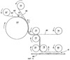 Со ссылкой на фиг.15 теперь будет описываться предпочтительный способ получения продукта для отбеливания зубов по настоящему изобретению. Лист 60 снимаемой накладки 27 сматывается с рулона 62 и подается поверх барабана 64. Лист 60 снимаемой накладки 27 (а также лист 66 полоски 12 материала) может формироваться с помощью любого из нескольких способов изготовления пленки, известных в данной области (например, способа раздувки или способа разлива). Такие способы, как экструзия, и другие способы, которые не влияют на жесткость на изгиб полоски материала, также могут использоваться. Сопло 68 наносит тонкий слой 70 композиции для отбеливания зубов на лист 60 снимаемой накладки 27. Соответствующая толщина тонкого слоя может достигаться путем соответствующего выбора и конструкции сопла 68, а также конструкции и выбора опорного барабана и других элементов производственной системы, которые смогут повлиять на осаждение тонкого слоя на лист 60. Лист 66 полоски 12 материала сматывается с рулона 70 и слегка прижимается поверх тонкого слоя 70 композиции для отбеливания зубов, тем самым формируя трехслойный ламинат. Ламинат вводится в валки 72, которые создают щель 40, а также прорезают насквозь лист 66 полоски 12 материала и тонкий слой 70 субстанции 12 для отбеливания зубов с целью определения наружных краев 74 (фиг.5) вторых секций 38 и 48. После операции резания и создания щелей на валках 72 избыток листа 66 полоски 12 материала отбирается с помощью рулона 76, тем самым оставляя первую и вторую секции полоски 12 материала и композиции для отбеливания зубов на листе 60 снимаемой накладки 27. Валки 78 разрезают снимаемую накладку 27 с формированием индивидуальных продуктов 10 для отбеливания зубов. Избыток снимаемой накладки 27 отбирается с помощью рулона 80, в то время как продукты 10 для отбеливания зубов собираются с помощью конвейера 82, после чего продукты для отбеливания зубов могут вставляться в упаковку с получением упакованного продукта для отбеливания зубов. Как будет понятно, эти стадии могут перегруппировываться, исключаться, и могут добавляться другие стадии, как известно в данной области.
