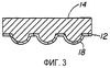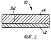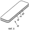Далее будет приведено подробное описание предпочтительных в настоящее время воплощений настоящего изобретения, примеры которых иллюстрируются на прилагаемых чертежах, где на всех видах сходные номера обозначают одинаковые элементы и где элементы, имеющие две одинаковые последние цифры (например, 20 и 120), обозначают сходные элементы. Все проценты здесь выражаются как процент массовый от композиции для отбеливания зубов, если не утверждается иного. Со ссылкой на фиг.1-8 теперь будет описано несколько примерных воплощений настоящего изобретения. Продукт 10 для отбеливания зубов содержит полоску 12 гибкого материала, тонкий слой 14 композиции для отбеливания зубов, содержащей пероксидное активное вещество, и, необязательно, снимаемую накладку 27 (фиг.8). Полоска 12 материала используется для нанесения (аппликации) композиции для отбеливания зубов на зубы и служит в качестве защитного барьера для предотвращения, по существу, контакта слюны с композицией для отбеливания зубов, а также для предотвращения удаления (вымывания) композиции для отбеливания зубов с поверхности зубов под действием губ, языка и других мягких тканей пользователя. Снимаемая накладка 27 также служит в качестве защитного барьера, но полоска 12 материала и тонкий слой 14 отделяются от снимаемой накладки 27 перед нанесением композиции для отбеливания зубов на зубы, тем самым открывая тонкий слой 14 для использования.