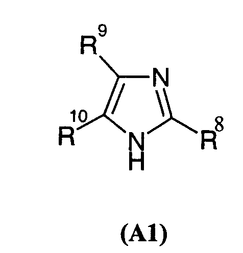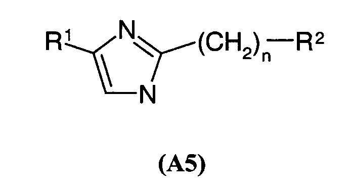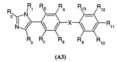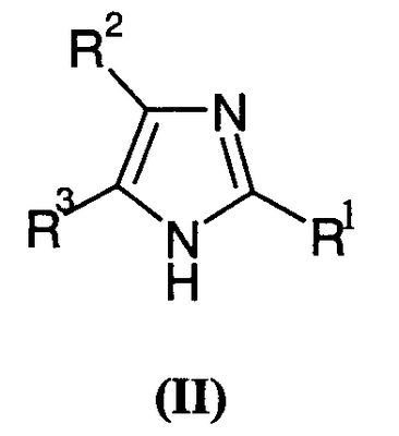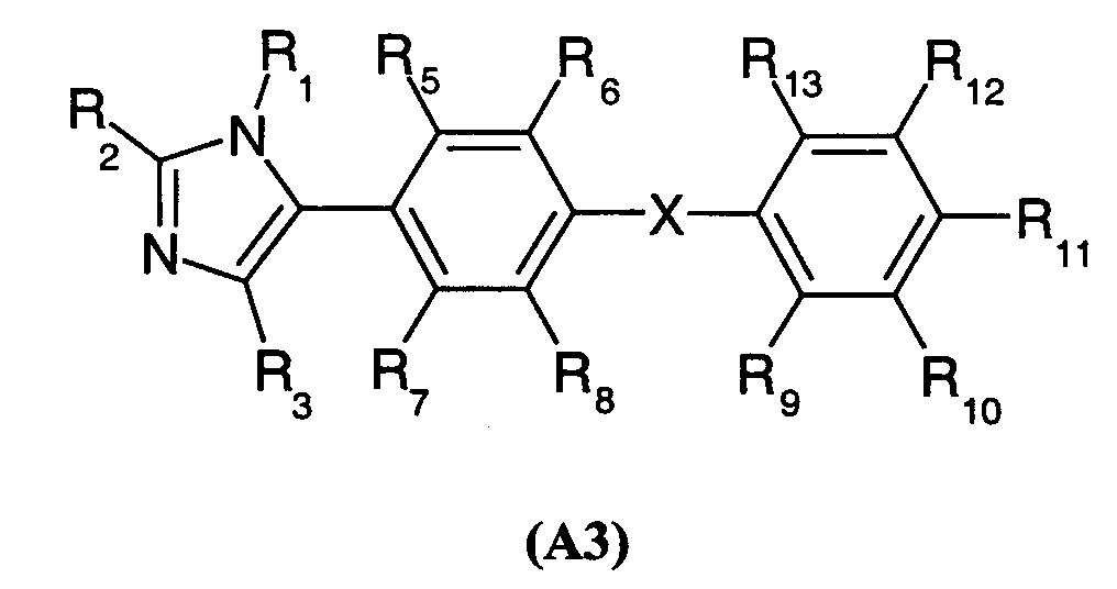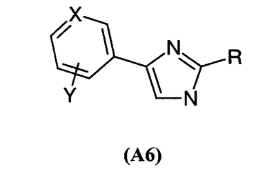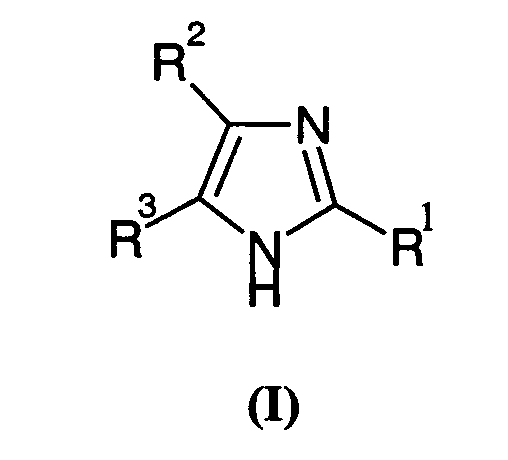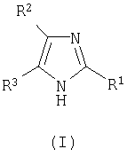 Если не определено по-другому, все используемые здесь технические и научные термины имеют такие же значения, которые обычно приняты специалистами в данной области, к которой относится данное изобретение. Аналогично, все публикации, патентные заявки, все патенты и все другие ссылки, упоминаемые здесь, включены в виде ссылок. Следующие примеры представлены для иллюстрации указанных выше методик и никоим образом не должны рассматриваться как ограничение объема изобретения. ПРИМЕРЫ Пример 1: 4-(1,1′-дифенил-4-ил)-2-(4-изобутилбензил)-1Н-имидазол 1.1) (4-изобутилфенил)уксусная кислота Смесь, содержащую пара-изобутилацетофенон (7 г, 40 ммоль), 10 мл морфолина и серу (2,45 г, 78 ммоль), подвергают кипячению с обратным холодильником в течение 18 ч. Затем концентрируют реакционную среду досуха и добавляют 50 мл 33% раствора бромистоводородной кислоты в уксусной кислоте. Полученную смесь нагревают при кипении с обратным холодильником в течение 3 ч, затем снижают температуру обратно до 23°С. Реакционную среду, к которой добавляют маленькими порциями толуол, снова концентрируют досуха. Остаток переносят в ацетон и отфильтровывают соли на фритте. Добавляют животный уголь и нагревают суспензию при кипении с обратным холодильником в течение двух часов с последующим фильтрованием через целит, фильтрат концентрируют досуха до перегонки в вакууме (Р 0,7 тор; Т 125-130°С). Окрашенное в желтый цвет твердое вещество получают при температуре окружающей среды (выход 33%). Т. пл. 78-80°С. 1.2) 4-(1,1′-дифенил-4-ил)-2-(4-изобутилбензил)-1Н-имидазол Полученную выше смесь, содержащую промежуточный продукт 1.1 (1,2 г, 6,76 ммоль) с карбонатом цезия (1,1 г, 3,38 ммоль) в 30 мл метанола, перемешивают при температуре окружающей среды в течение одного часа. Растворитель выпаривают, затем переносят остаток в 30 мл диметилформамида. Далее добавляют 2-бром-4′-фенилацетофенон (1,85 г, 6,76 ммоль) и смесь оставляют на 18 ч при перемешивании. Реакционную среду концентрируют досуха и переносят остаток в 80 мл ксилола. После фильтрования на фритте добавляют к фильтрату ацетат аммония (10,4 г, 135 ммоль). Полученную смесь нагревают при кипении с обратным холодильником в течение 2 час., удаляя воду при помощи устройства Дина Старка. Охладив реакционную смесь обратно до температуры окружающей среды, выливают ее в воду со льдом. Ацетат аммония нейтрализуют насыщенным раствором NaHCO3 до того, как фазы оставляют осаждаться, и экстрагируют, применяя этилацетат. Затем органическую фазу обрабатывают насыщенным раствором хлорида натрия, сушат над сульфатом магния и концентрируют досуха. После очистки на колонке с диоксидом кремния (элюент: этил-гептанацетат: от 2-8 до 6-4) получают окрашенный в желтый цвет порошок (выход 52%). Т. пл. 160-161°С. МН+=367,3. Пример 2: 2-гексил-4-(4-изобутилфенил)-1Н-имидазол 2.1) 2-бром-1-(4-изобутилфенил)этанон Бром (1,25 мл, 25 ммоль) добавляют по капле к раствору 4′-изобутилацетофенона (3,52 г, 20 ммоль) в 60 мл этанола, охлажденному примерно до 5°С. После перемешивания реакционной смеси в течение 30 мин при данной температуре, продолжают перемешивание при температуре окружающей среды в течение одного часа. Реакционную среду, к которой добавляют маленькими порциями толуол, концентрируют досуха. После очистки на колонке с диоксидом кремния (элюент: этил-гептанацетат: 5-95) получают бесцветное масло с выходом 57%. ЯМР 1Н (400 МГц): 0,85 (д, 6Н); 1,84