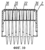 фиг.10 – вертикальное сечение средства подачи с поддоном и длинными наконечниками по фиг.9; и