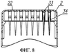 В случае использования коротких наконечников (33), длина фланца которых короче расстояния между поддоном (19) и верхней частью (22) средства подачи (2) по сравнению с наконечниками (21), показанными на фиг.6, то чтобы стабилизировать их положение в средстве подачи (2) посредством упора в верхнюю часть (22) средства подачи (2), поддон (19) имеет кольца (34) вокруг отверстий, на верхних краях которых установлены короткие наконечники (33), как показано на фиг.7 и в сечении на фиг.8.