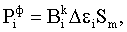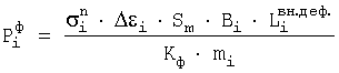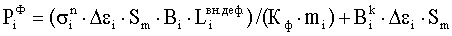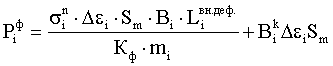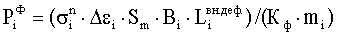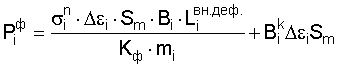 где – усилие формоизменения в i-той клети; – напряжение на наружной поверхности полосы в i-той клети, определяемое из диаграммы истинных напряжений [МПа]; Sm – толщина заготовки, [мм]; Bi – ширина заготовки, находящаяся в контакте с валками, [мм];  – длина неконтактной зоны деформации в I-том калибре, определяется по специальной методике, [мм]; Кф – коэффициент схемы формовки; mi – ширина i-того калибра, [мм]; – полный периметр заготовки в i закрытой клети; i – величина деформации гиба в i-той клети, определяется как разность деформаций в i-том и в (i-1)-м калибре с учетом распружинивания:  i= i-(1- ) i-1