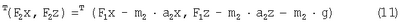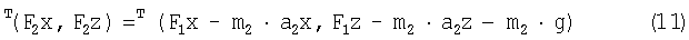T(m2·а2х, m2·a2z)=T(F1x-F2x, F1z-F2z-m2·g), таким образом,