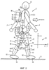Таким образом, в соответствии с настоящим вариантом осуществления можно просто оценивать в реальном масштабе времени силы реакции опоры, действующие на соответствующие ноги 2, и моменты, действующие на тазобедренные суставы 8 и коленные суставы 10 соответствующих ног 2, благодаря использованию относительно небольших и легких датчиков, например датчиков 22 и 23 углов, прикрепленных к тазобедренному суставу 8 и коленному суставу 10 ((прим.пер.) исправлено в соответствии с прилагаемой инструкцией для осуществления изменений), гиродатчиков 14 и 19 и измерителей 15, 20 и 21 ускорения, прикрепленных к туловищу 5. Это исключает необходимость обеспечения ног 2 датчиками, которые мешают ходьбе человека 1 или добавляют нагрузку на движения ног 2. Кроме того, оценка может быть достигнута с относительно высокой точностью независимо от скорости V движения или аналогичного параметра.