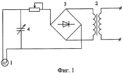 В форму для изготовления изделия до начала или в процессе укладки бетонной смеси, дисперсно-армированной фибрами, устанавливают парные электроды (фиг.1). Электроды 1 располагают одиночно или группами в сечениях, в которых необходимо достигнуть минимального содержания дисперсной арматуры. К электродам подключают генератор импульсных токов, состоящий из трансформатора 2, выпрямителя переменного тока 3 и накопителя энергии 4. Трансформатор 2, подключенный к сети переменного тока напряжением 220…380 В, повышает напряжение до 1…5 кВ. После этого электроэнергия поступает на выпрямитель 3, где преобразуется в постоянный ток, который накапливается в накопителе энергии 4, представляющем собой блок конденсаторов, до энергии 0,2…5 кДж. Накопленная энергия подается на парные электроды 1, в результате чего в бетонной смеси 5 в стороны от электродов распространяется волна сжатия, которая перемещает дисперсную арматуру по вектору своего рассеивания.