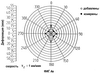 Фиг.4a-4d – двумерное графическое представление деформации и наклона нарезаемых проволокой пластин в виде функции направления обработки при двух разных значениях подачи;