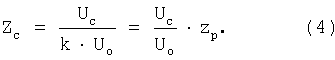 Следовательно, отношение напряжений Uc и Uo пропорционально величине сопротивления токопроводящего стыка Zc. Численные значения удельного электрического сопротивления рельсов zp и длины lо=1 м отрезка сплошного рельса, на котором измеряется падение напряжения, известны.