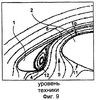 Это устройство по фиг.1 можно снова видеть на фиг.2 с разделительной поверхностью 6, которая составлена из нескольких установленных последовательно щеточных волосков 7 и, например, образует ряд щеточных волосков. На фиг.2 можно увидеть, что эти щеточные волоски 7 в положении полета пассажирского самолета вследствие своей гибкости самостоятельно выравниваются, следуя силе ветра, по потоку воздуха. Они, по меньшей мере, частично, закрывают уловленный турбулентный поток 12 и тем самым препятствуют описанному энергообмену.