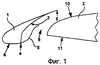 Для того, чтобы понять ситуацию с возникновением шума на обтекаемом предкрылке 1, выдвинутом из основного крыла 2 пассажирского самолета, остановимся вначале подробнее на устройстве по фиг.9. На этом изображении, в дополнение к исполнению данной конфигурации во вступительной части, четко показывается на прохождение потока воздуха вокруг этого оригинального предкрылка 1 в выдвинутом положении во время взлета и приземления пассажирского самолета. Наблюдателю может показаться интересным тот факт, что обширные исследования на вогнутой внутренней стороне предкрылка 1 идентифицируют в качестве потенциального источника шума “уловленную турбулентность 12 воздуха”, которая образована в виде так называемого вихревого цилиндра и составляет часть мешающего общего шума. На основании пространственного расширения данного эффекта по всей длине этой несущей поверхности речь идет при этом о высокоэффективном источнике звука, уровень шума которого необходимо, по меньшей мере, уменьшать. Для предотвращения возможных недоразумений еще добавляется, что поверхность внутренней стороны предкрылка 1 представляет собой вогнутый сводчатый внутренний участок, который совпадает с наружным контуром основного крыла 2, причем этот внутренний участок имеет форму закругленного перехода в направлении длины предкрылка.
