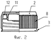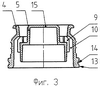 Винтовая крышка 2 выполнена с внутренней резьбой, взаимодействующей с наружной резьбой наружной втулки 4, внешняя поверхность винтовой крышки 2 может быть гладкой или с рифлениями 8, взаимодействующими с рифлениями 7 кожуха для фиксации от проворота. Крышка 2 закреплена на наружной втулке 4, соединенной ребрами 9 с внутренней втулкой 5 и с образованием проходных каналов 10. На внутренней поверхности крышки 2 имеются кольцевой цилиндрический выступ 11 и компенсаторы 12, предохраняющие изделие от деформации и разрушения при укупорке.