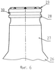 Контейнер содержит корпус 26, горловину 27, венчик 28. На торцовой поверхности венчика 28 выполнены стопорные ребра 29, взаимодействующие с зубчиками 24 для фиксации от проворота. На боковой поверхности венчика 28 бутылки выполнена кольцевая канавка 30 для последующей завальцовки нижней части металлического кожуха 1 при укупорке.